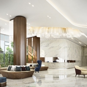 ˙結合都會與居住舒適的完美設計,挑高五米的禮賓大廳、講究舒適與品味兼具的質感空間設計,從建材的挑選到傢俱的配置,處處展現出不凡的氣度。