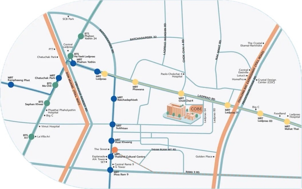 交通: ◾ Ladprao地區,人人都想住在這裡,充滿活力、創造力,以及新一代都市人的活力 ◆購物消費:Chokchai4 市場、Central Ladprao百貨、Union Mall百貨、Central Eastville百貨、Central Rama 9百貨 即將開幕的大型專案 THE CENTRAL PHAHOLYOTHIN 位於 CENTRAL LADPRAO 附近,將成為Central百貨二期,提供無盡購物狂歡的大型購物中心。 ◆國際學校:4分鐘 → 蒙特梭利國際幼兒園 、9分鐘 → SISB學校(新加坡國際學校)、10分鐘 → KIS學校(曼谷KIS國際學校)、15分鐘 → Lertlah學校(Kaset-Nawamin路) 建案一個為重視子女教育的年輕家庭而設的社區,週邊遍布知名學校,提供泰國和國際課程。讓孩子在家附近學習,交通便利,並有更多時間享受家庭活動。 ◆交通、生活便利:COBE Ladprao - Sutthisan是多條主要道路的交匯處。 靠近辦公大樓和商業區,避免日常交通擁擠;靠近生活中心,例如 Central Ladprao、Union Mall、咖啡館、隱密酒吧和共享辦公空間。 位於一個日夜充滿活力的地區,無論是尋求 24 小時居住空間的一代人,還是尋求便捷交通的職場人士,都是理想之選。 ◾ 健康人士的聚集地,Ladprao不僅位於市中心黃金地段,更是滿足各種健康生活方式需求,可以體驗自然風光、大型公園以及各種健康活動。 ◆乍都乍公園:健康人士和尋求輕鬆城市度假的人士的聚集地;還有琳瑯滿目的購物場所,包括食物、服飾等等。 ◆ SALADA 有機廚房:採用新鮮天然食材精心烹調的有機餐廳,非常適合注重健康、尋求清潔均衡能量補充的人士。 ◆ Sport Club Padel Asia:全新的運動俱樂部,提供時下流行的板式網球運動,這項運動融合了網球和壁球的元素,在注重健康的人群中越來越受歡迎。 td> 裝潢: 天地牆,衛浴冷氣廚具,(家具家電另洽) 公共設施: 大廳*、社交休憩區、健身房*、郵件收發室、管理中心、外送取件站*、游泳池與兒童戲水池、 階梯花園、商業建築、THINK庭院、交流休憩區*、手作與共享空間*、會議室*、直播工作室*、頂樓花園 *24hr公設提供 備註:公設內容如有變動,恕不另行通知 地契類別: 永久地權 建案平均單價: 大約 10 萬泰銖每平方米,199萬泰銖起 預訂方式