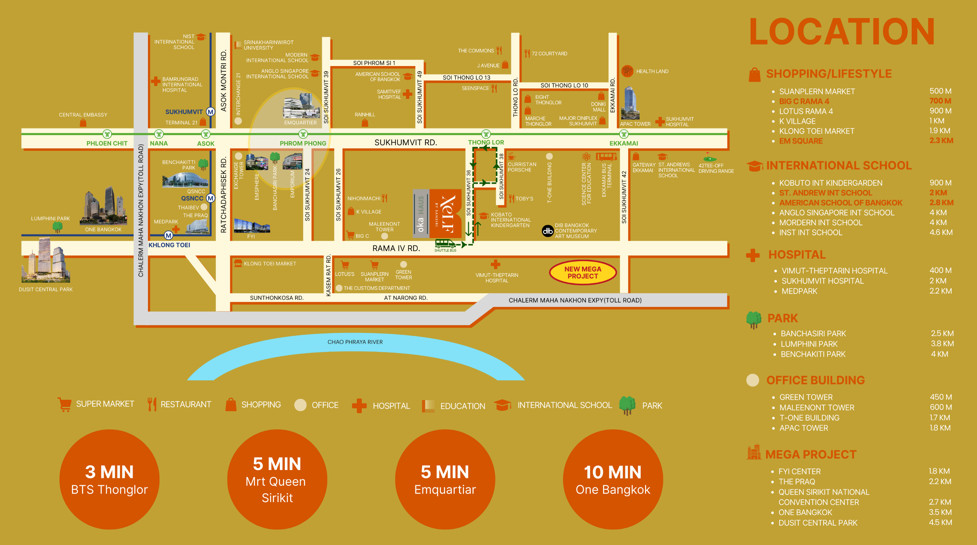 Sukhumvit、Thonglor、CBD 等核心區域,鄰近頂級辦公室、百貨公司